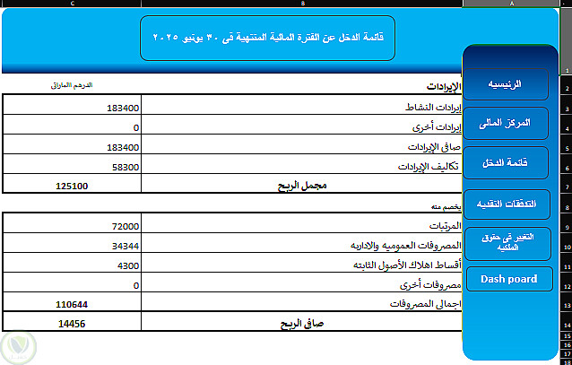 "قمت ببناء نظام مالي متكامل على برنامج Excel يتضمن إعداد القوائم المالية الأربعة الأساسية (المركز المالي، الدخل، التدفقات النقدية، وحقوق الملكية) بشكل مترابط وتلقائي. يتميز المشروع بوجود لوحة تحكم (Dashboard) لتحليل البيانات المالية بصرياً، مما يساعد الإدارة على اتخاذ قرارات دقيقة بناءً على أرقام واقعية ومنظمة بدقة محاسبية 100%."