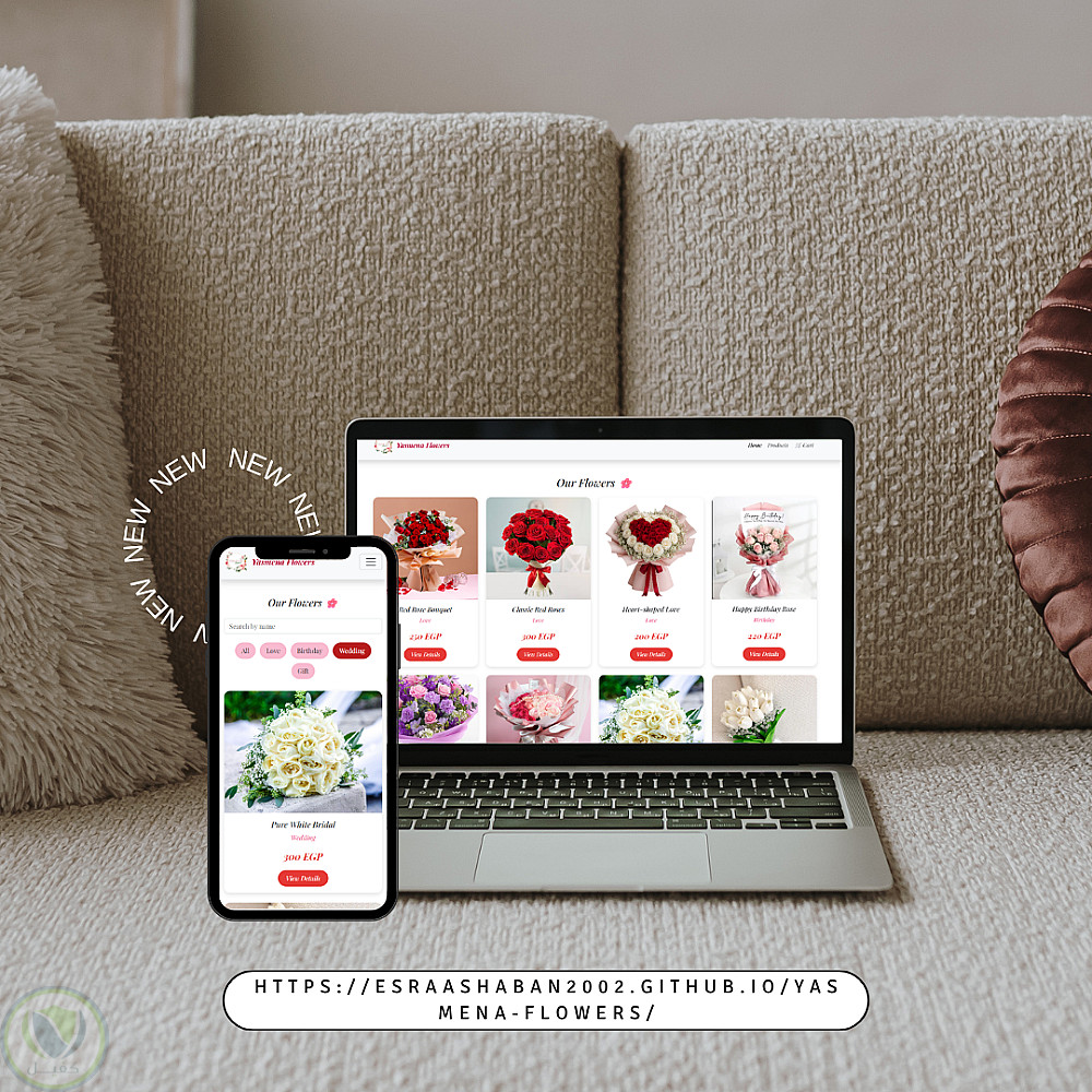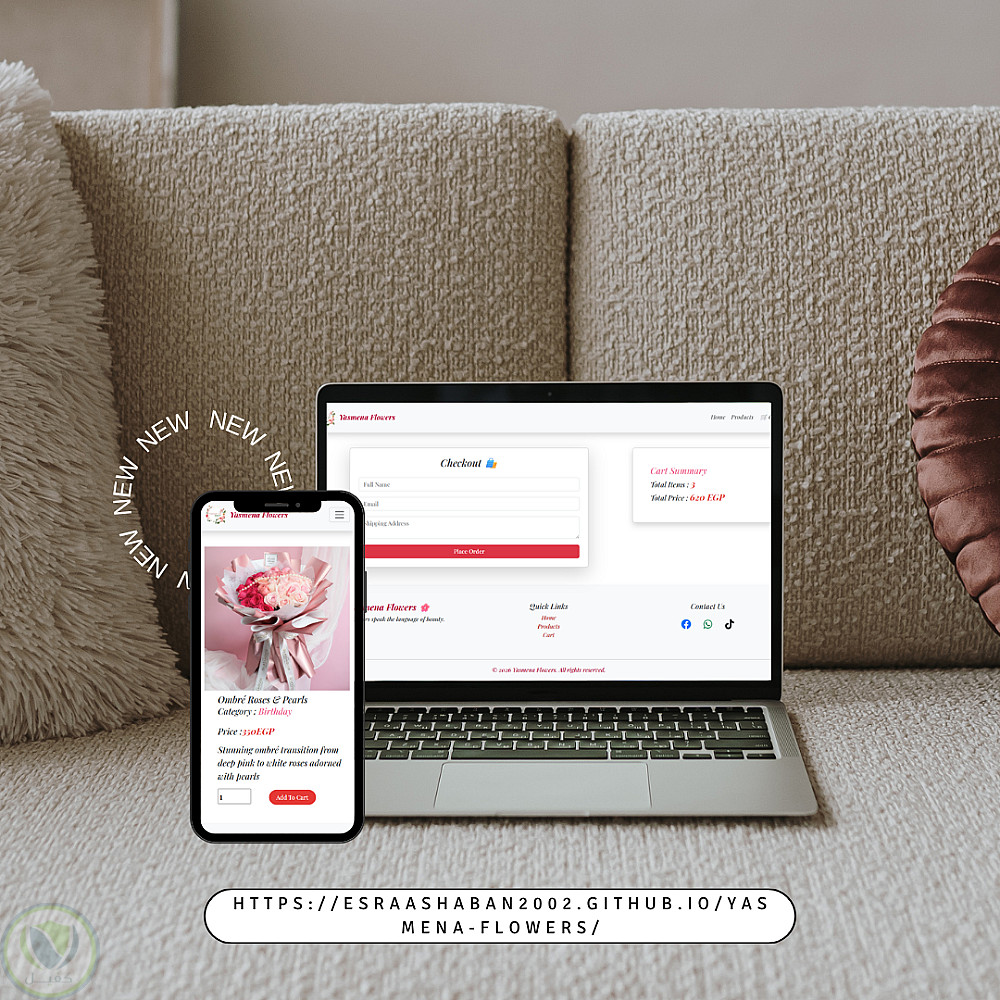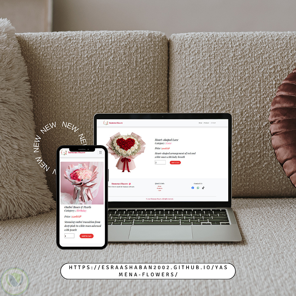 قمت بتصميم وتطوير موقع إلكتروني لبيع الزهور باسم Yasmena Flowers، يهدف إلى تقديم تجربة مستخدم بسيطة وجذابة لعرض المنتجات.