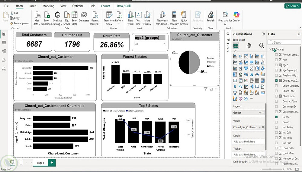 لوحة تحكم لتحليل معدل دوران العملاء (Telecom Customer Churn Dashboard