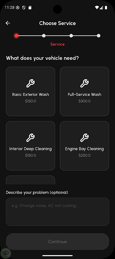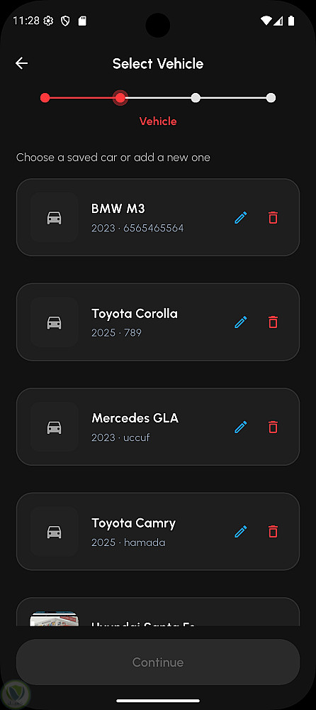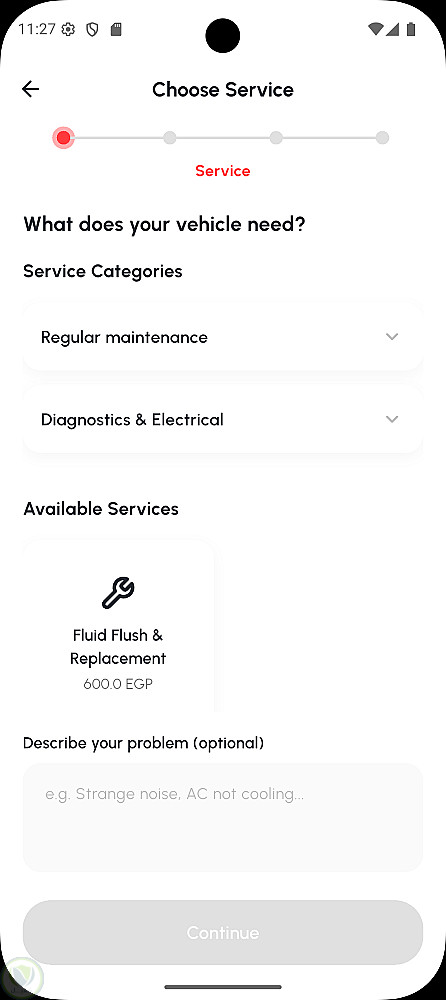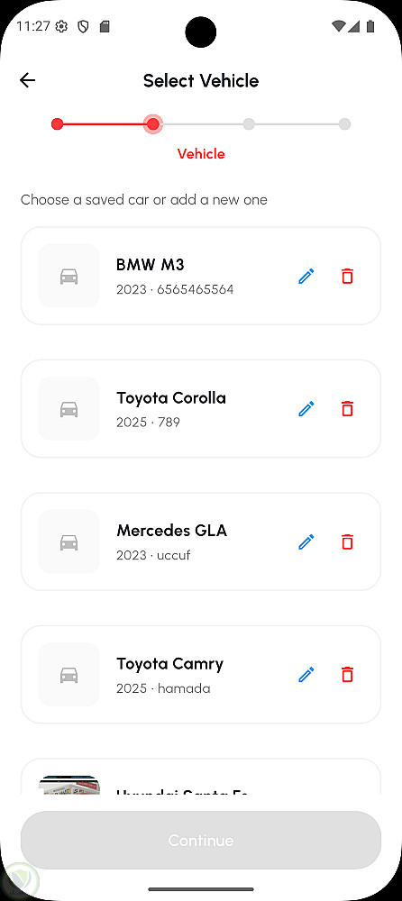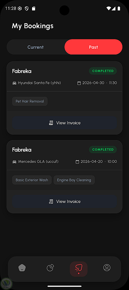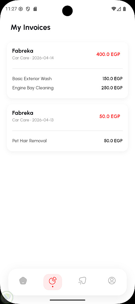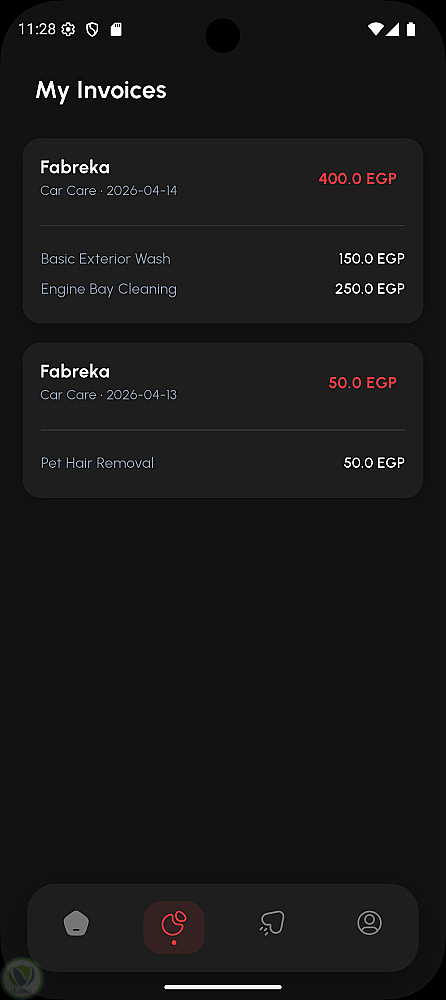 كما يتيح التطبيق إمكانية إنشاء ملف شخصي، حفظ وإدارة بيانات مركبات متعددة، اختيار الخدمات وتحديد مواعيد الحجز بدقة، بالإضافة إلى نظام متكامل لإدارة الفواتير والمدفوعات (بالجنيه المصري EGP) ومتابعة سجلات الحجوزات الحالية والسابقة.