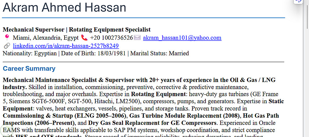 قمت بإنشاء سيرة ذاتية (CV) احترافية متوافقة مع أنظمة تتبع المتقدمين (ATS)، مع تصميم بسيط ومنظم يساعد على اجتياز أنظمة الفرز والوصول إلى مسؤولي التوظيف بسهولة.