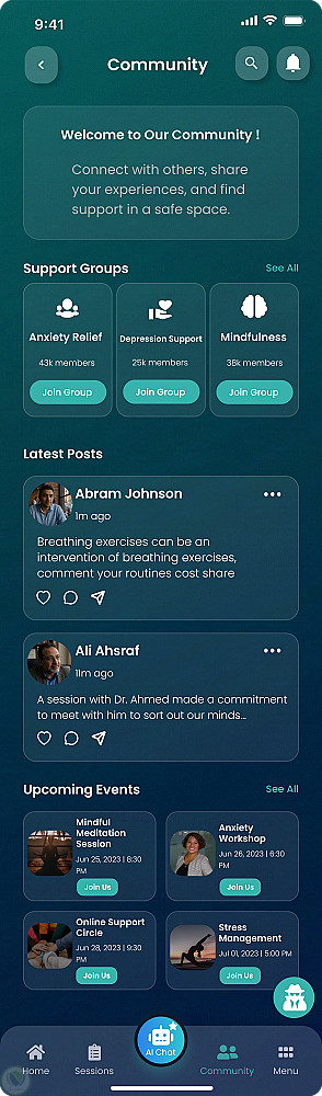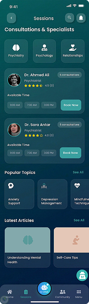 تطبيق للصحة النفسية مدعوم بالذكاء الاصطناعي - تصميم UI/UX متوافق مع معايير الوصول