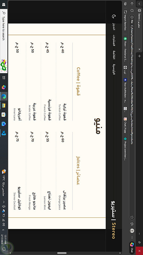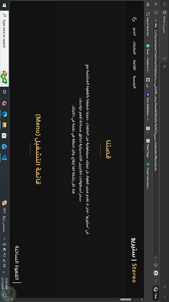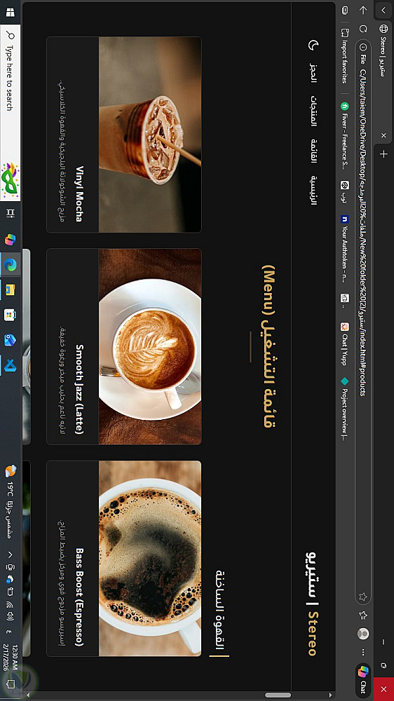 أقدم لك خدمة تصميم موقع ويب متكامل (مثل نموذج Stereo Cafe) مخصص للمطاعم والكافيهات التي تبحث عن الأناقة والاحترافية، مع ميزات تقنية تزيد من مبيعاتك وتسهل تجربة عملائك.