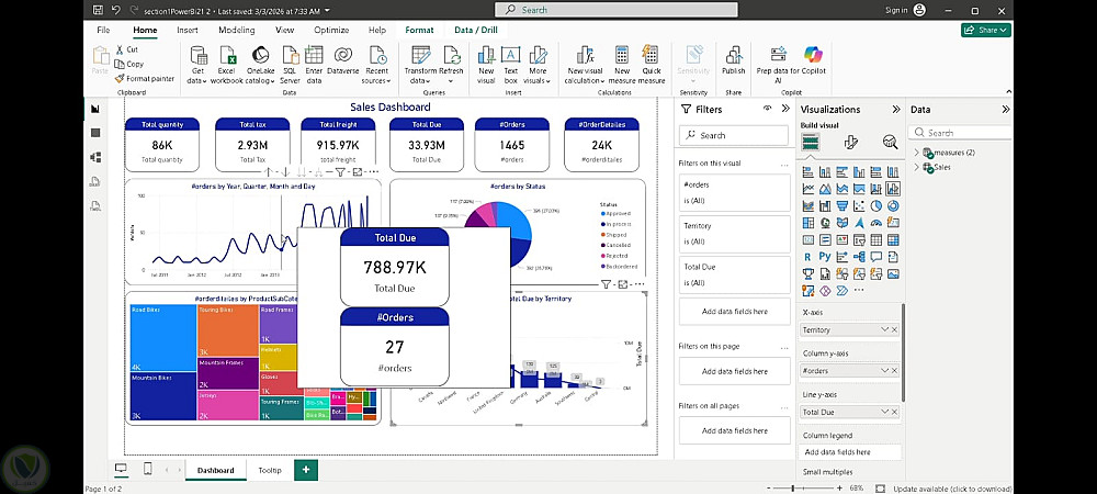 - تحليل عدد الطلبات وحالة الطلبات لمتابعة كفاءة العمليات البيعية.