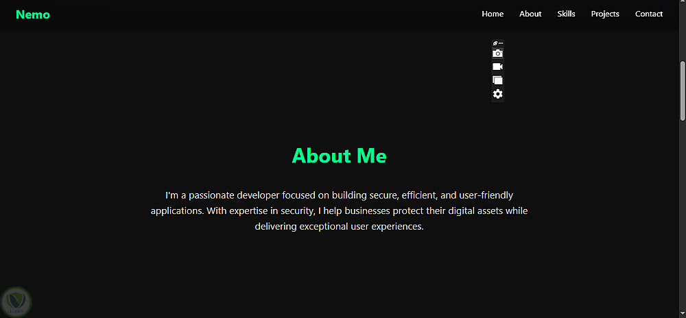 يحتوي الموقع على أقسام أساسية مثل نبذة تعريفية، عرض الأعمال (Projects)، المهارات، ووسائل التواصل، مما يساعد الزائر على التعرف بسرعة على الخبرات والخدمات المقدمة. كما تم تنفيذ تصميم متجاوب يعمل بكفاءة على جميع الأجهزة، مع تحسين سرعة التحميل وتجربة المستخدم.