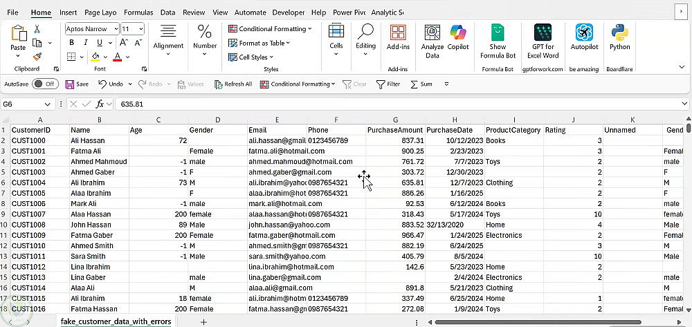 تنظيف وتحليل البيانات باستخدام Python (حذف الأخطاء والقيم المفقودة وتنظيمها)، ثم تحليلها لاستخراج معلومات وأنماط مفيدة.
