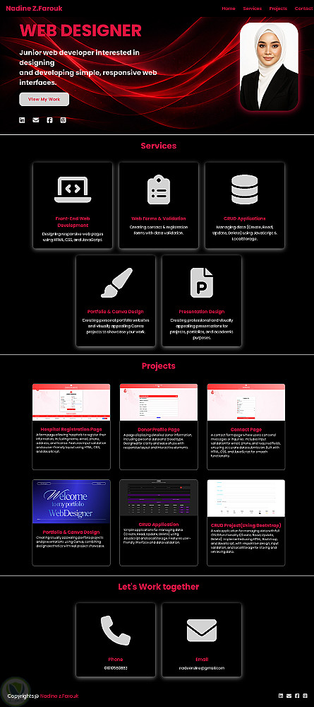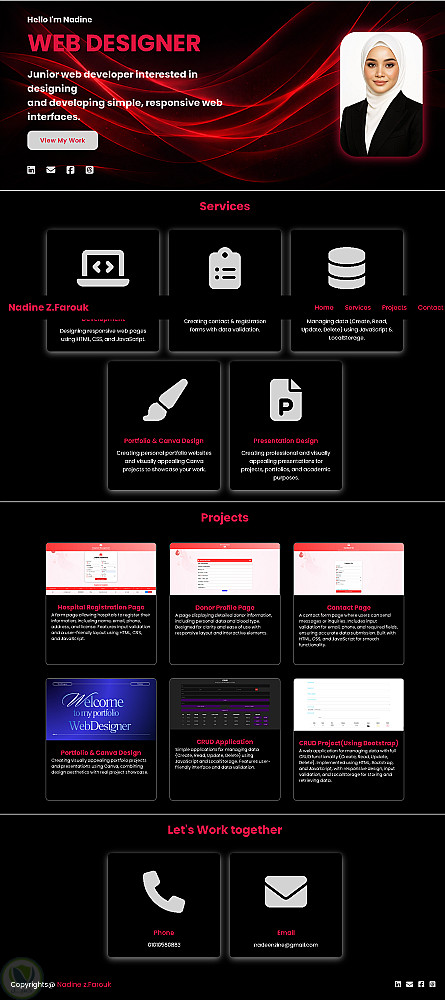 قمت بتصميم وتطوير موقع Portfolio احترافي لعرض الأعمال والمهارات بشكل منظم وجذاب. ركزت على إنشاء تصميم عصري وبسيط يعكس الهوية الشخصية، مع تجربة مستخدم سهلة وسلسة.