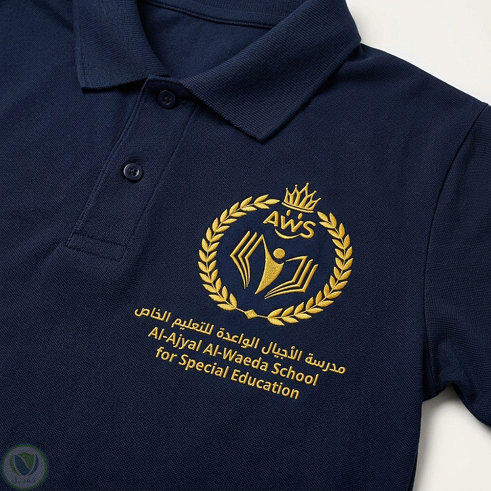 الزي المدرسي (Uniform): تطبيق الشعار بأسلوب التطريز على تيشرتات المدرسة.