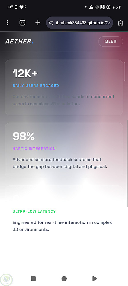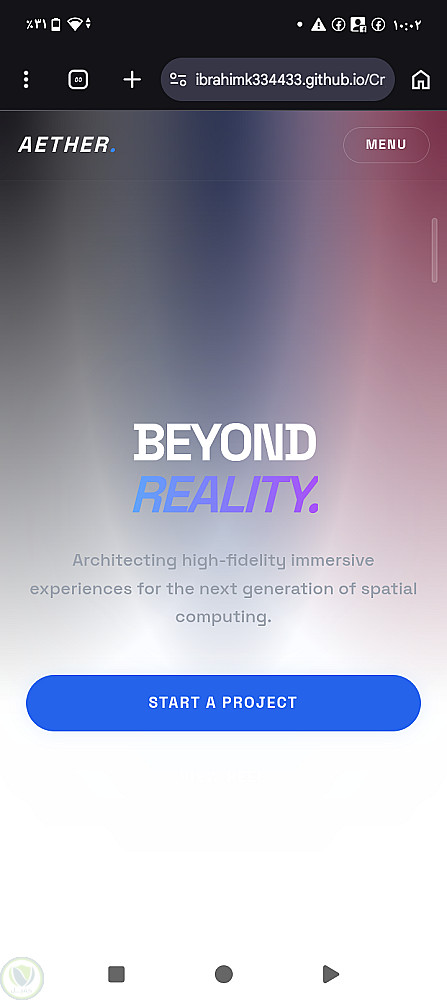 قمت بتطوير صفحة هبوط عصرية لوكالة AETHER المتخصصة في التجارب الغامرة والحوسبة المكانية.
