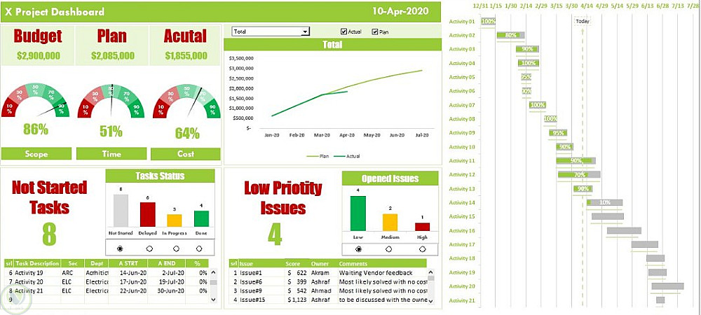 نظام متكامل لإدارة وتحليل المشاريع وأتمتة التقارير (Project Management Dashboard)