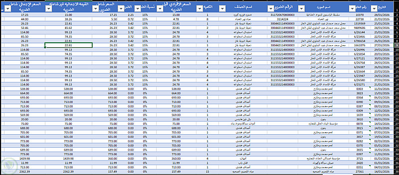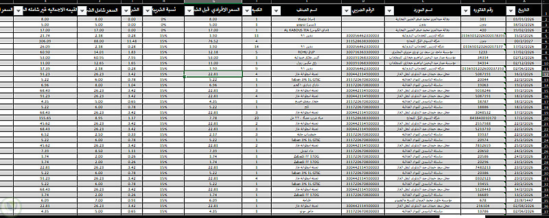 دقة البيانات: نقل كافة تفاصيل الفواتير (التاريخ، المورد، رقم الفاتورة، البيان) مع ضمان خلوها من الأخطاء البشرية.