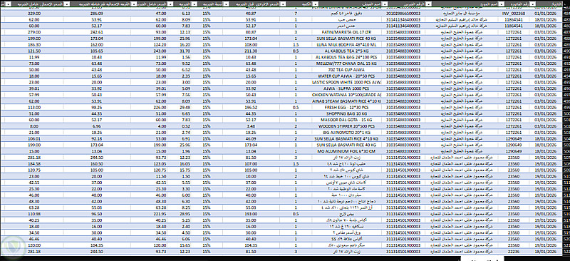 "قمت في هذا المشروع بتحويل وتفريغ مجموعة ضخمة من الفواتير الورقية والإلكترونية إلى نظام إكسيل (Excel) منظم ومؤتمت بالكامل.