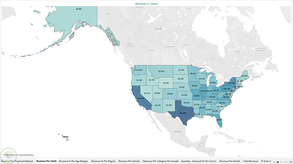 قمت بتطوير لوحة تحليل مبيعات تفاعلية باستخدام Tableau، مع التركيز على تحويل البيانات الخام إلى رؤى واضحة وقابلة لاتخاذ القرار.