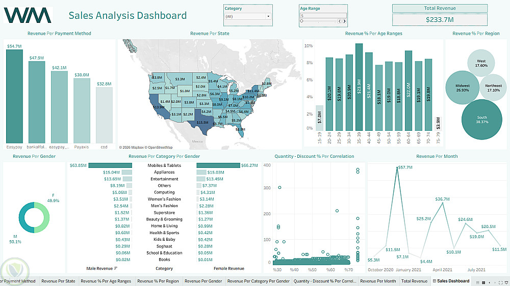 لوحة تحليل مبيعات تفاعلية باستخدام Tableau