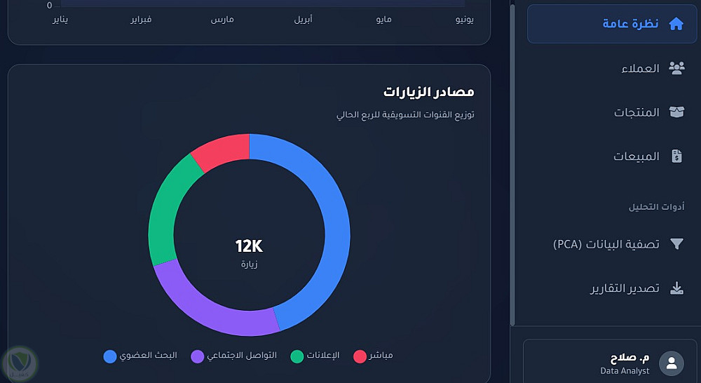 تصميم واجهة مستخدم (UI) واضحة تعرض الرسوم البيانية والإحصائيات بشكل احترافي.