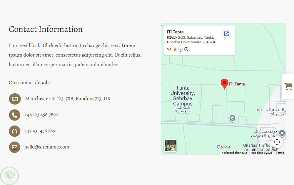 يحتوي الموقع على صفحة رئيسية (Landing Section) مميزة تضم صورة خلفية عالية الجودة مع نص ترحيبي وأزرار Call To Action مثل (Learn More / Contact Us)، بالإضافة إلى شريط تنقل (Navbar) بسيط وسهل الاستخدام.