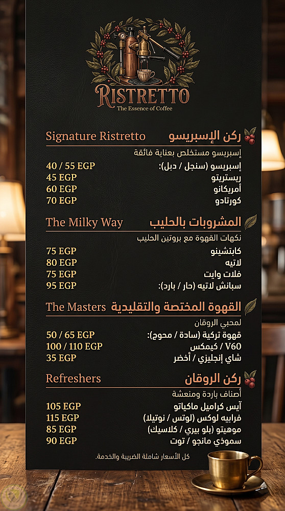 تصميم الهوية البصرية لكافيه RISTRETTO (شعار + منيو)