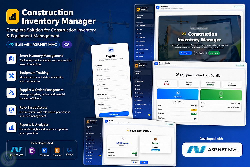 مدير مخزون الإنشاءات | تطبيق ويب ASP.NET MVC