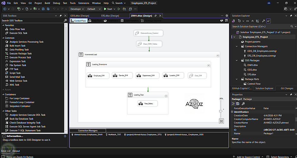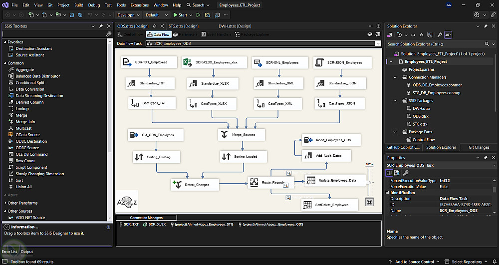 - معالجة الأخطاء، حذف التكرار، وتصميم "مستودع بيانات" (Data Warehouse) منظم.