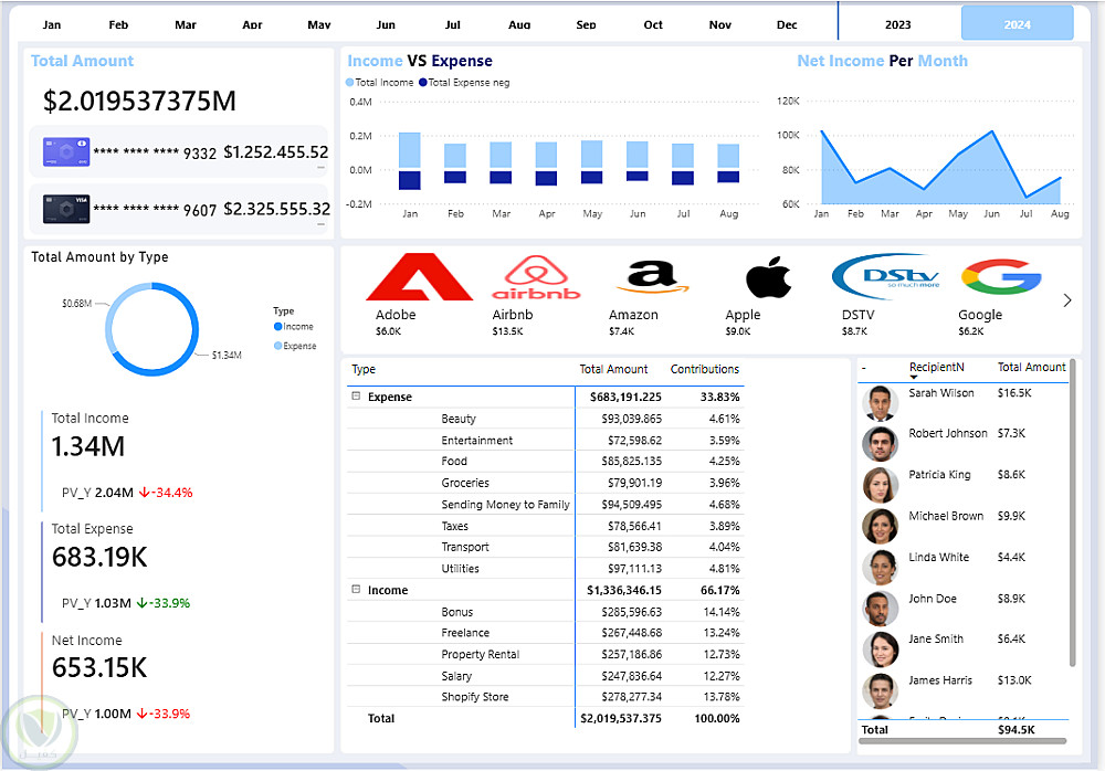Financial Dashboard لتحليل الدخل والمصروفات باستخدام Power BI