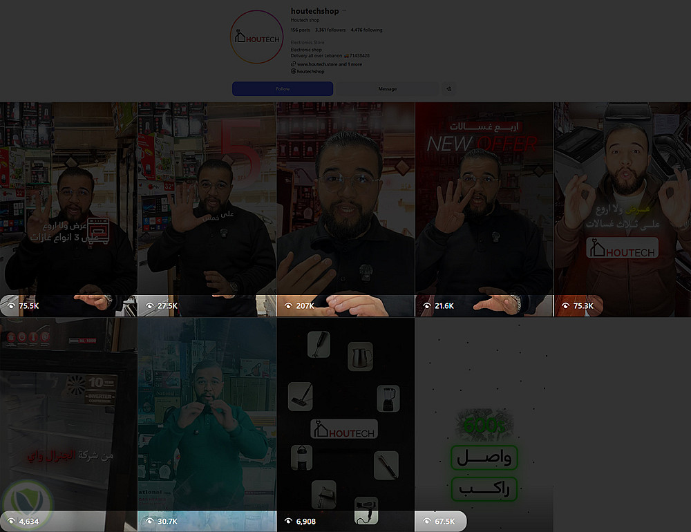 ريلز احترافية لمحل إلكترونيات Houtech – بيروت
