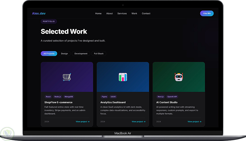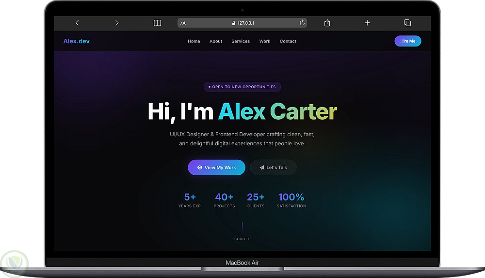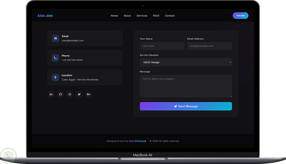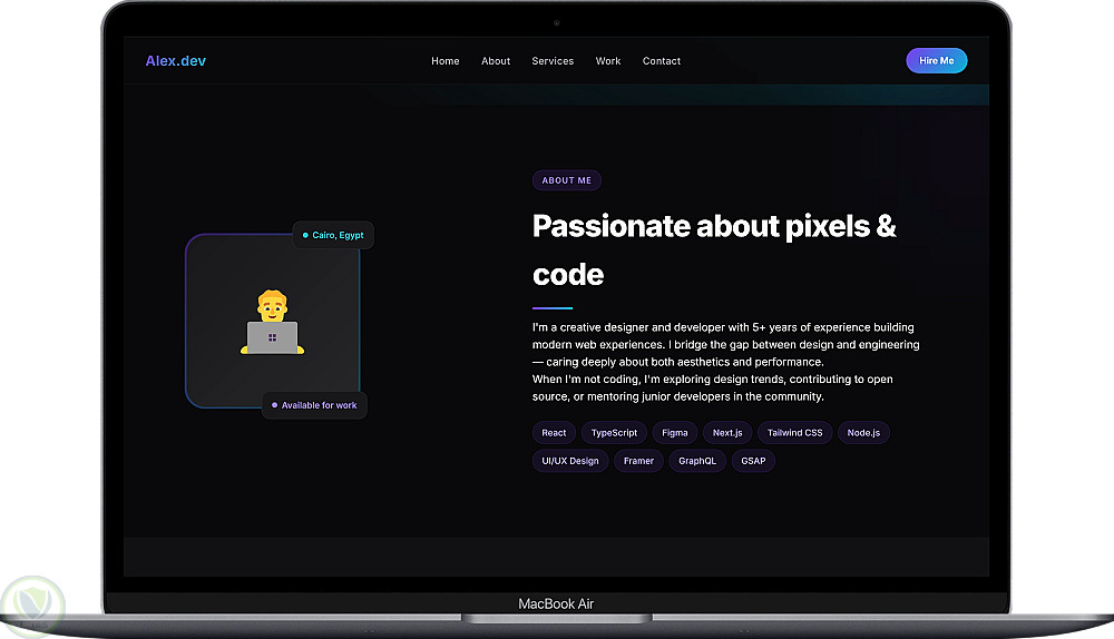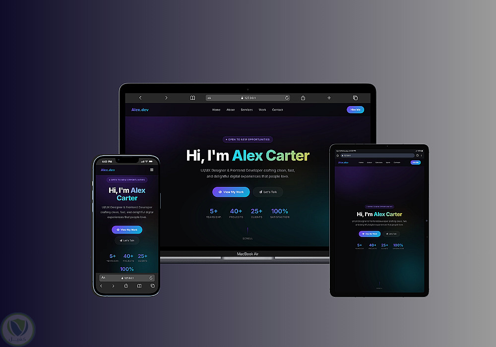 تصميم و تطوير بورتفوليو شخصي احترافي عصري و مميز و متجاوب علي جميع الأجهزة و يتميز بأنميشنز بسيطة و جذابة.