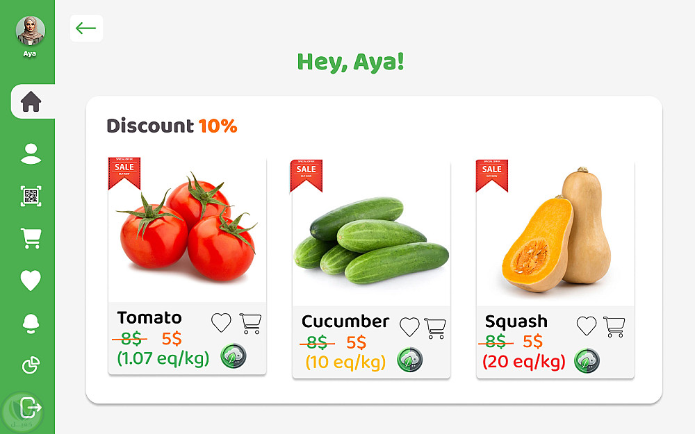 تصميم واجهة وتجربة مستخدم لتطبيق تسوق ذكي على التابلت مع تتبع البصمة الكربونية