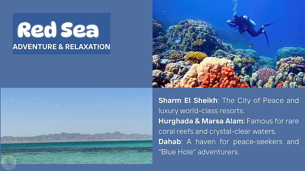 اختيار صور احترافية: انتقيت أفضل الصور التي تبرز تفاصيل المعالم السياحية (من الأهرامات العريقة إلى شواطئ البحر الأحمر الساحرة).