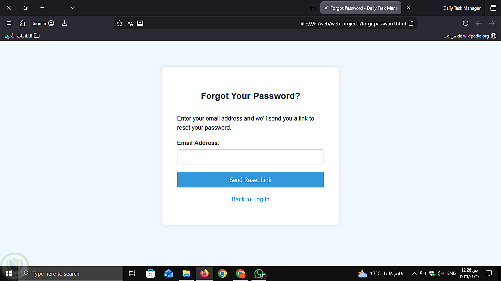 تطبيق ويب متكامل مصمم لمساعدة المستخدمين على تنظيم مهامهم اليومية وإدارة وقتهم بكفاءة. يوفر التطبيق بيئة عمل منظمة تتيح للمستخدم تتبع إنتاجيته من خلال واجهة مستخدم بديهية وتقارير إحصائية دقيقة، مع التركيز على تجربة المستخدم وسرعة الاستجابة.