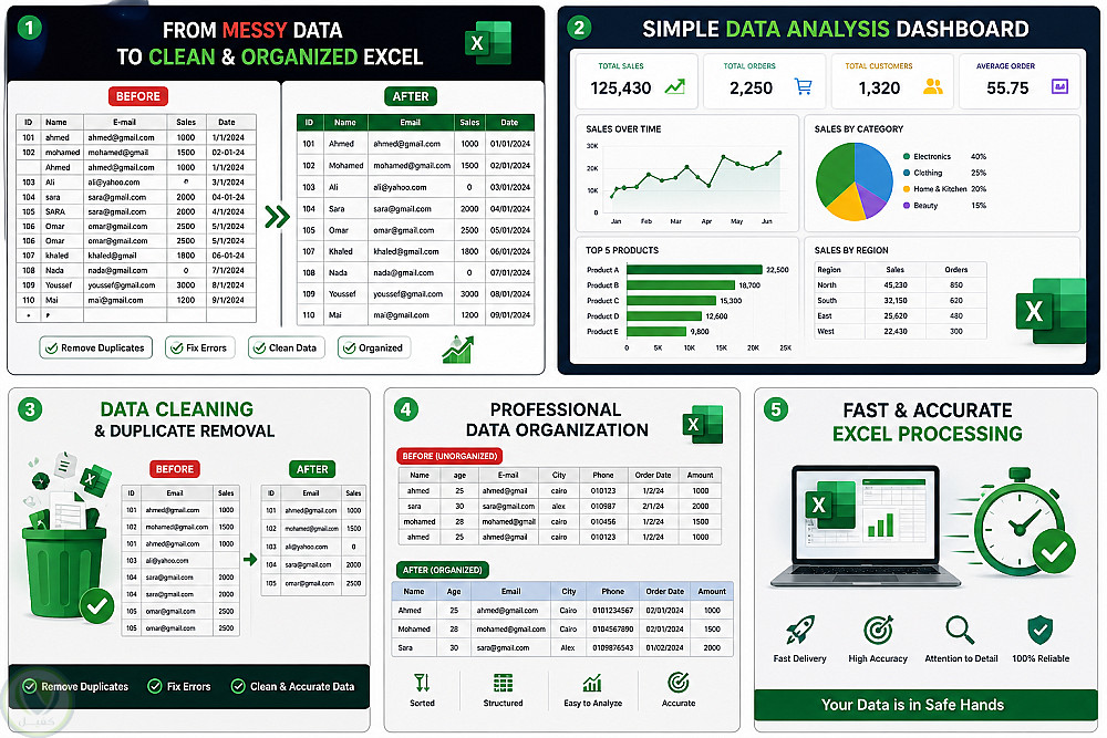 تنظيم وتحليل بيانات Excel بشكل احترافي (Data Cleaning & Analysis)