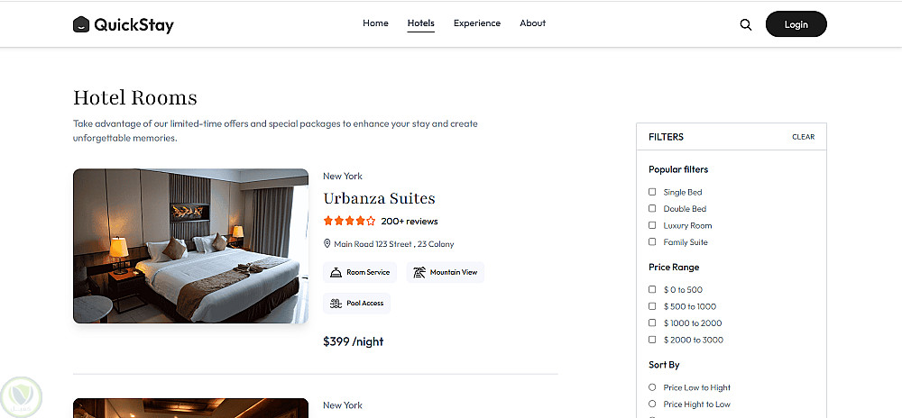 موقع ويب ديناميكي باستخدام رياكت للفنادق