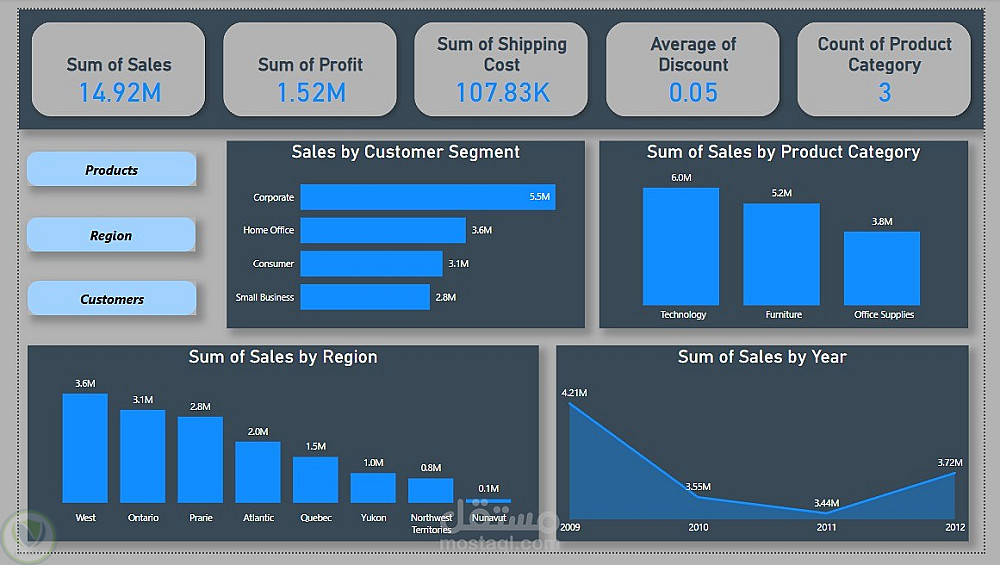 لوحة تحكم تحليل مبيعات وتحليل أداء المنتجات والعملاء