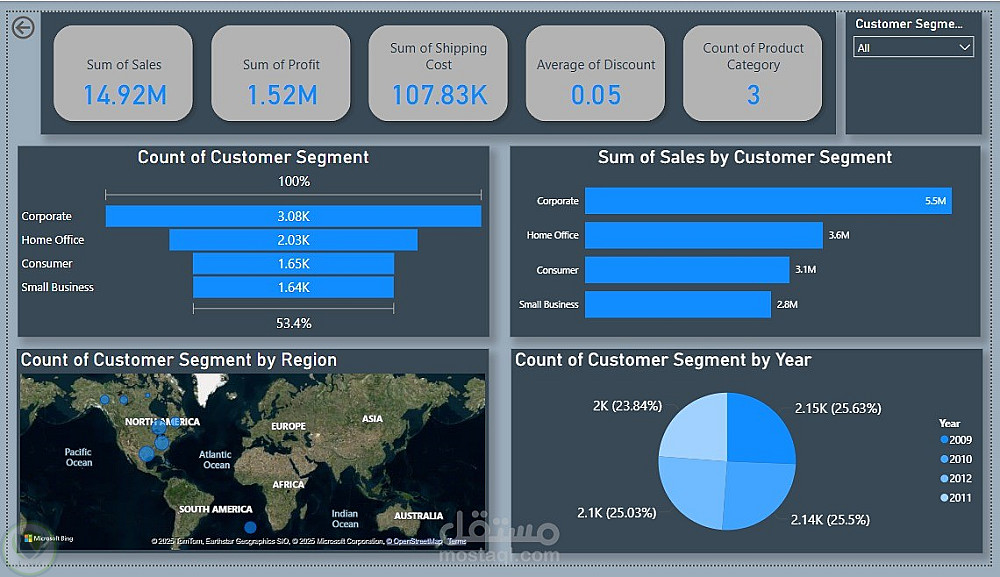 تم إنشاء لوحة تحكم تفاعلية باستخدام Power BI لتحليل بيانات المبيعات بناءً على عدة عوامل مثل الفئات المنتجات، المناطق الجغرافية، وأنواع العملاء. توفر هذه اللوحة نظرة شاملة حول الأداء التجاري من خلال مؤشرات الأداء الرئيسية (KPIs) والرسوم البيانية التفاعلية، مما يساعد في اتخاذ قرارات مستنيرة بناءً على البيانات.