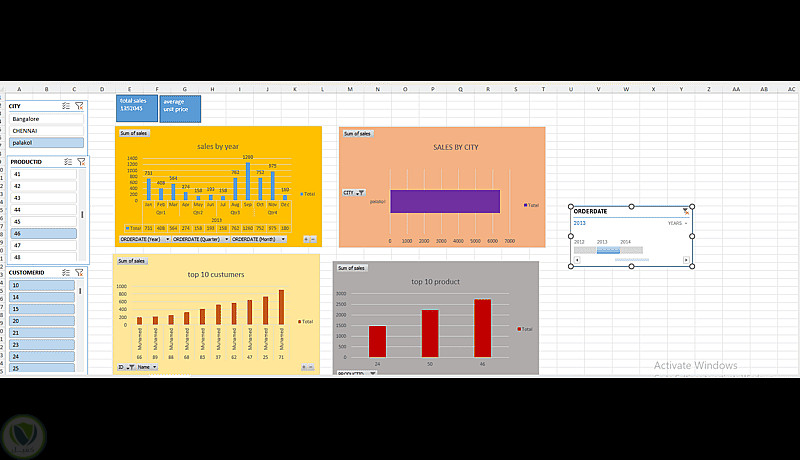 لوحة معلومات (Dashboard) احترافية تم تصميمها باستخدام برنامج Excel لعرض وتحليل بيانات المبيعات بشكل تفاعلي وواضح.
