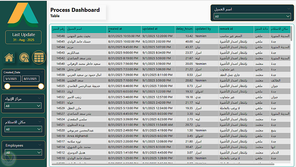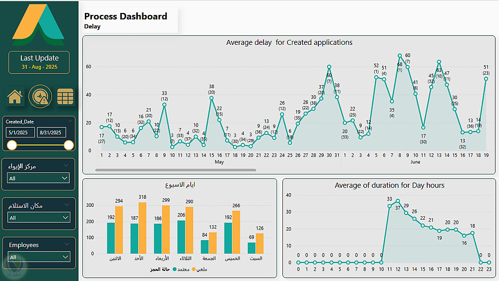 متابعة الطلبات المتأخرة ومتوسط مدة التأخير علي عدد الطلبات