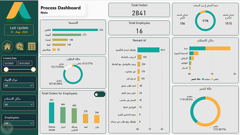 تمت عملية التحليل علي مستوي نسب حالة الطلب المعتمد والملغي والساري
