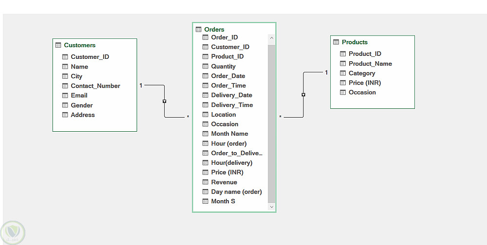 • بناء العلاقات بين الجداول (Customers, Orders, Products) باستخدام (Customer_ID, Product_ID).