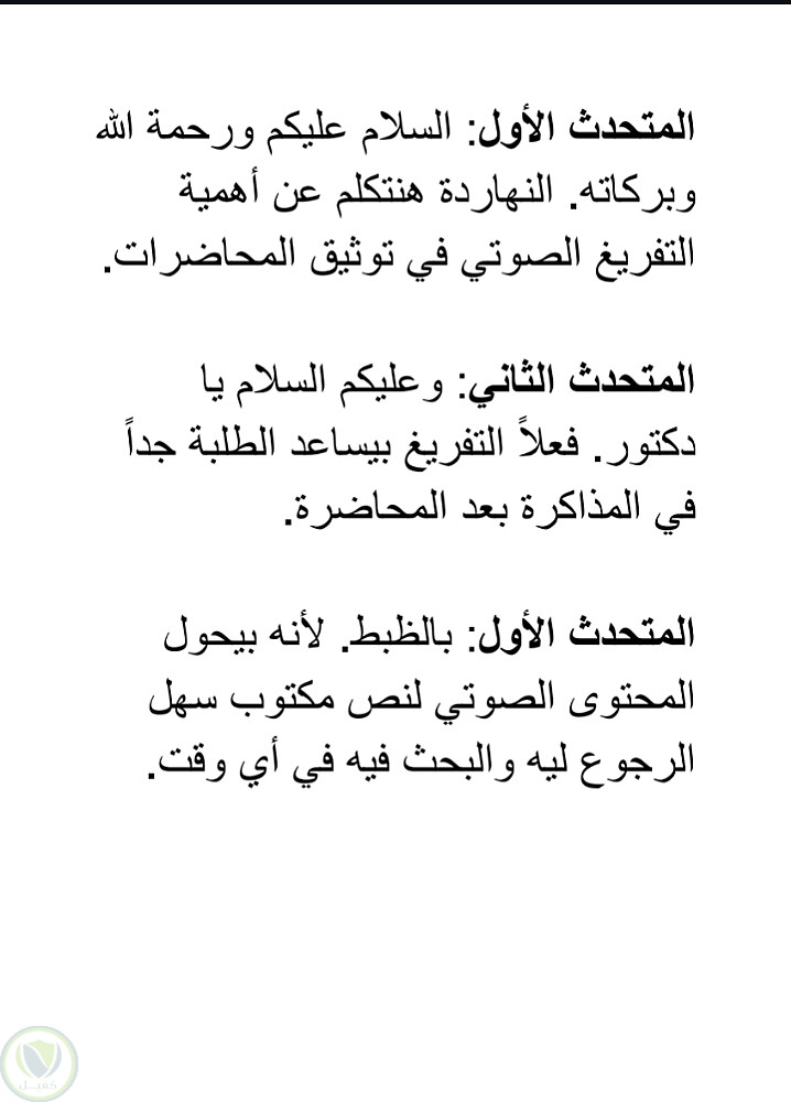نموذج تفريغ محاضرة باللهجة المصرية