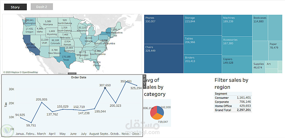 عرض تفاعلي لقصة مبيعات Superstore باستخدام Tableau