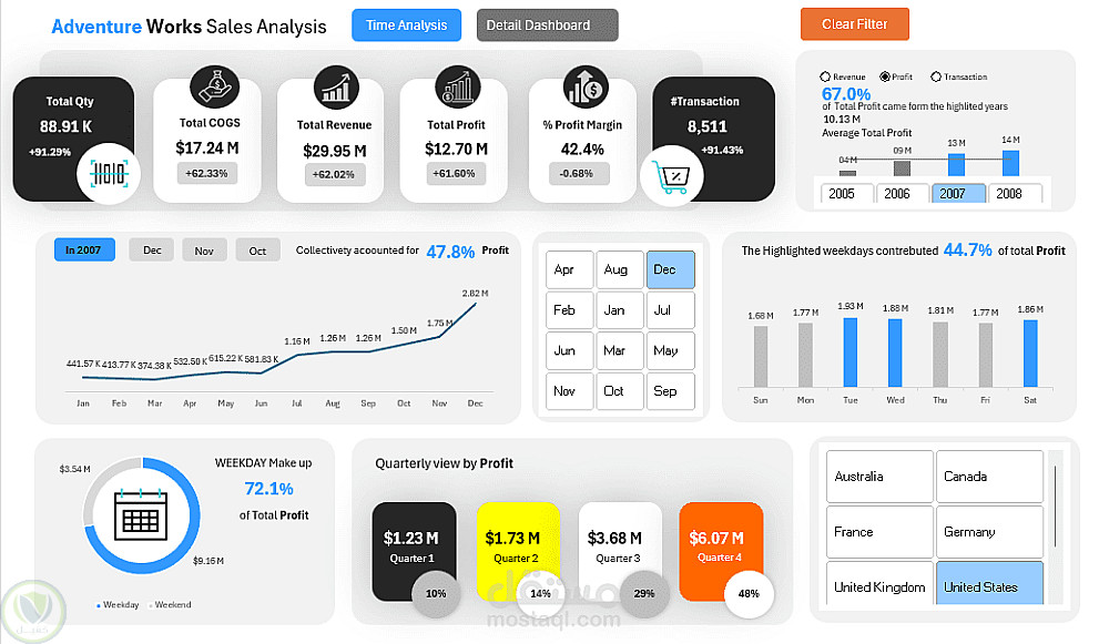 ✔️ مقاييس DAX المتقدمة – بناء KPIs، حساب الأرباح، ورؤى ديناميكية.