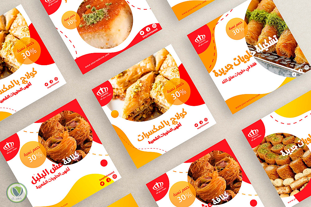 تم تصميم سوشيال ميديا حلويات لصالح حلويات ساق الله