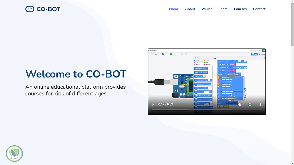 A website for CO-BOT, an online educational platform provides courses for kids.
