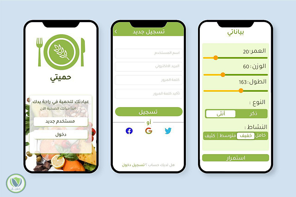 تصميم UX UI خاص بتطبيق حميتي لمتابعة الوزن والصحة