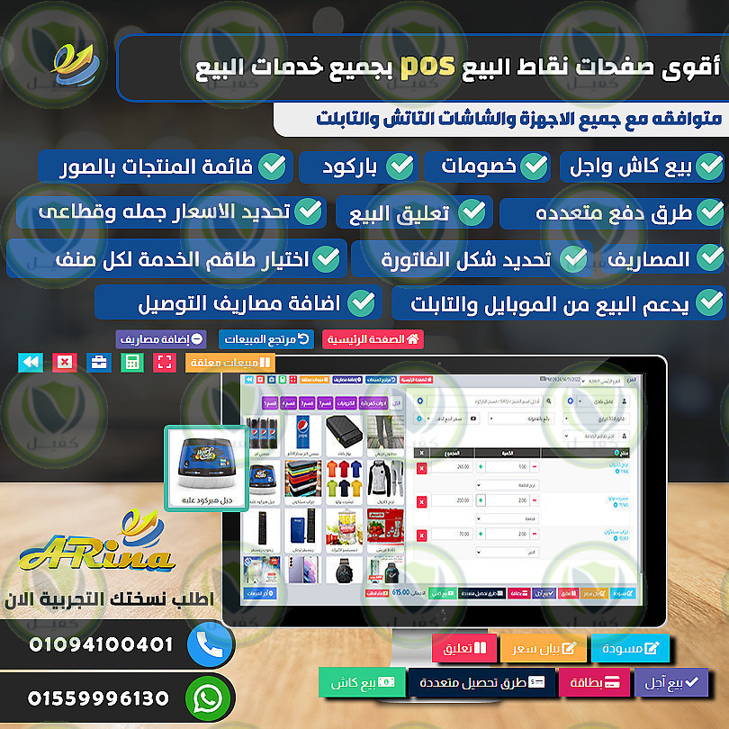النظام متوافق مع جميع الاجهزة الكمبيوتر والشاشات التاتش والاندرويد والايفون.