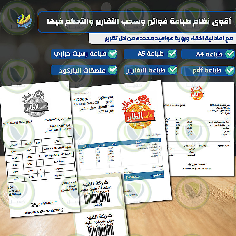 ✅ تصميم شكل الفاتورة والرسيت يعمل على a4 و a5 ورسيت حراري 80ملي