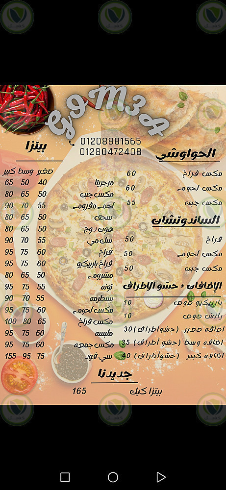 قائمه طعام لمطعم بيتزا