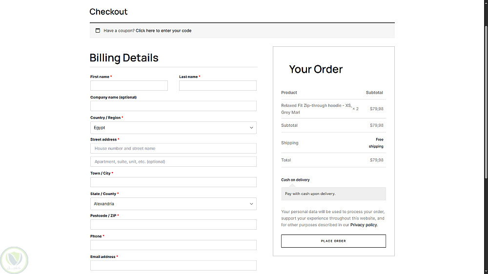 يوجد أيضًا صفحة سلة المشتريات، وصفحة إتمام الطلب، ونظام بحث.