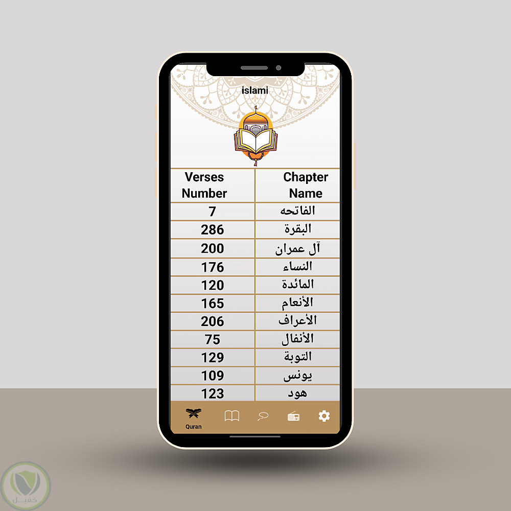 القرآن الكريم: عرض سور القرآن كاملة مع عدد آيات كل سورة، وإمكانية البحث والتصفح بسهولة.