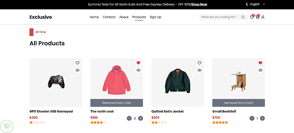Exclusive is a modern e-commerce web application built using React, Tailwind, and DaisyUI for a sleek and user-friendly interface. The app integrates React Router for seamless navigation, Redux Toolkit for state management, and React Query for efficient data fetching. It uses Firebase Authentication for secure user login and Firebase Database to store and manage product data.