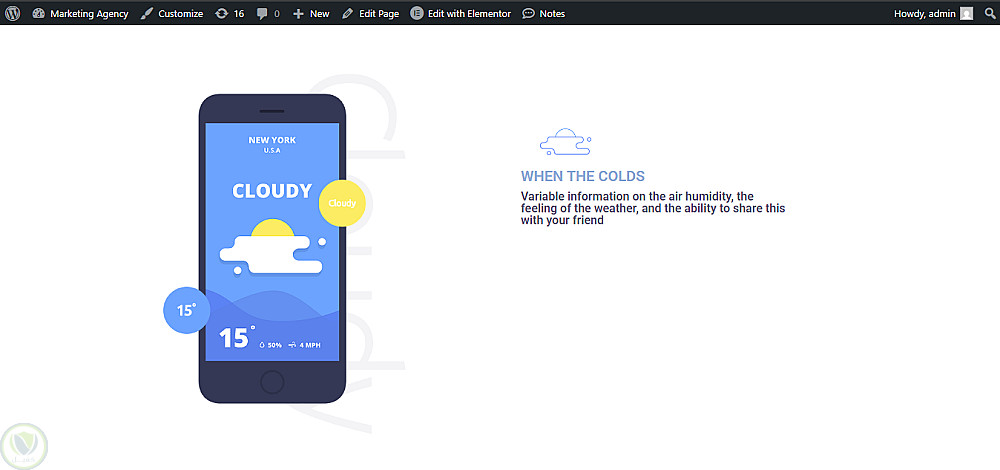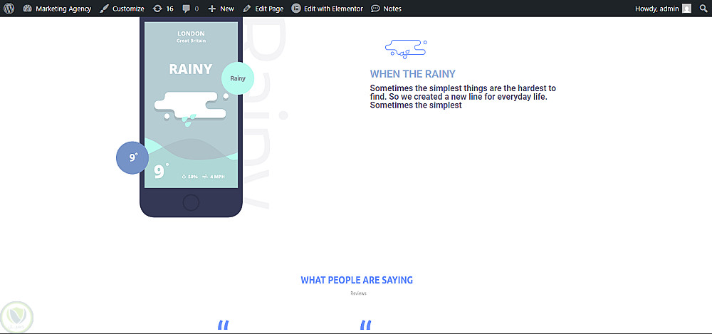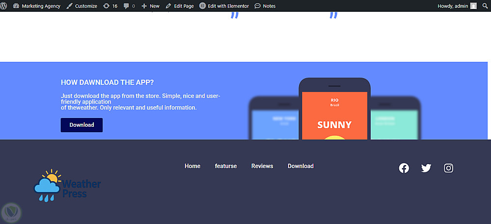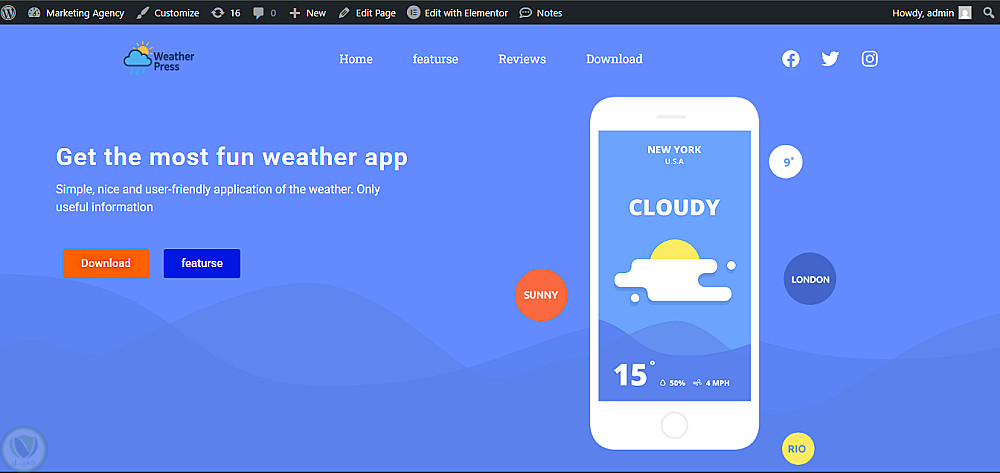 "تصميم موقع واجهة لتطبيق طقس باستخدام WordPress وElementor"